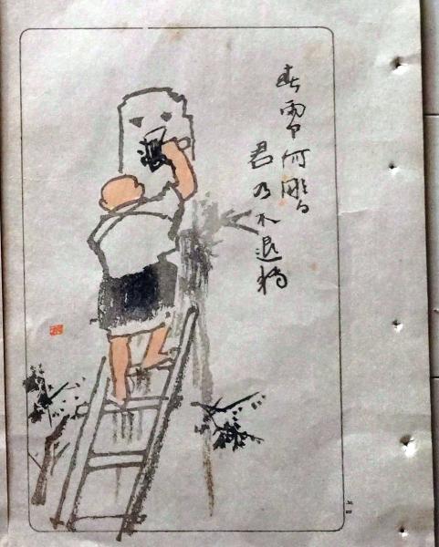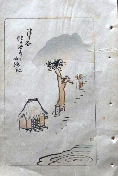 D26021505〇中村不折俳画 彩色木版画 山路 椿谷蛇の池ありて山路かな 明治43年〇和本古書古文書