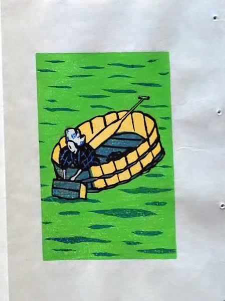 D260131E10〇彩色木版画 忙散亭図会 佐渡風流 船小屋 高尾亮一著画刻 昭和53年〇和本古書古文書