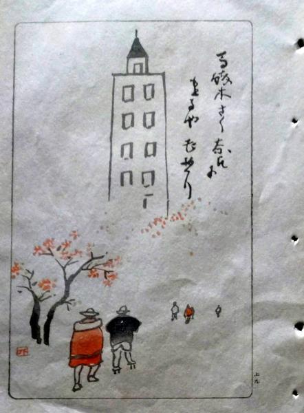D26021509〇中村不折俳画 彩色木版画 東京見物 馬酔木咲く奈良に戻るや花巡り 明治43年〇和本古書古文書
