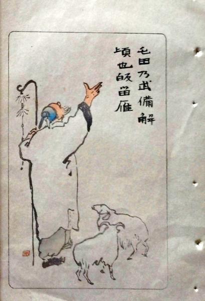 D26021510〇中村不折俳画 彩色木版画 蘇武 屯田の武備解く頃や帰る雁 明治43年〇和本古書古文書