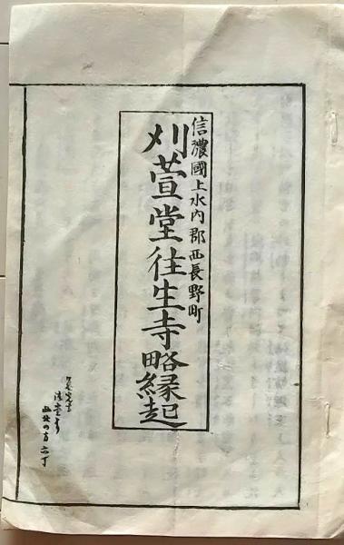 一枚摺物 木版 刈萱堂往生寺略縁起 信濃国上水内郡西長野町昭和年代〇和本古書古文書