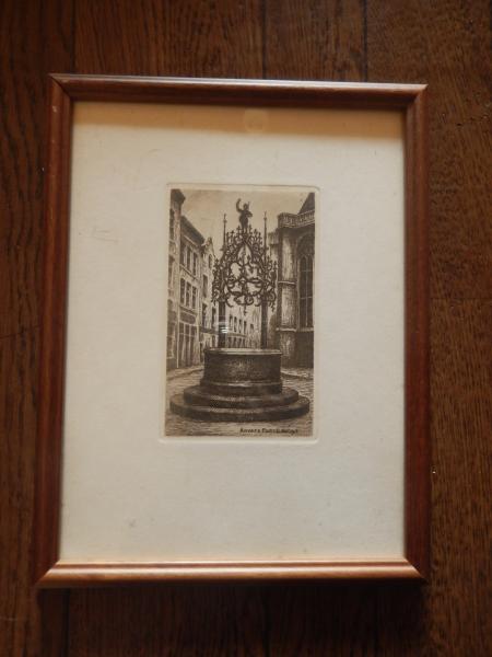銅版画 Anvers Puits Quentin Metsys クエンティン・メッツィス Belgique エッチング 額サイズ25cm-19cm
