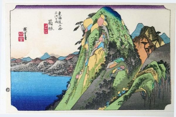 D26020011〇彩色木版画 ハガキサイズ 東海道五十三次 箱根宿 保永堂版 広重 複刻昭和年代〇和本古書古文書