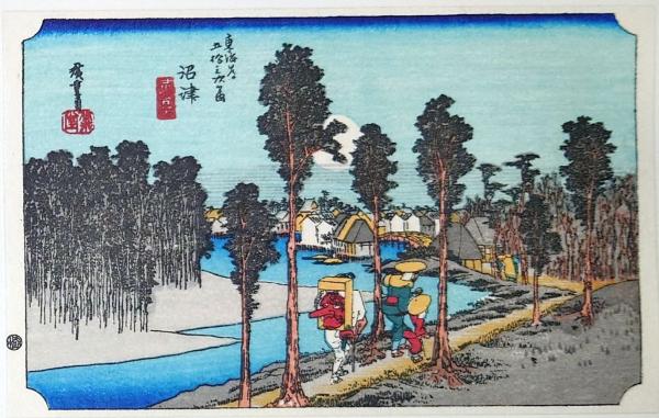 D26020013〇彩色木版画 ハガキサイズ 東海道五十三次 沼津宿 保永堂版 広重 複刻昭和年代〇和本古書古文書