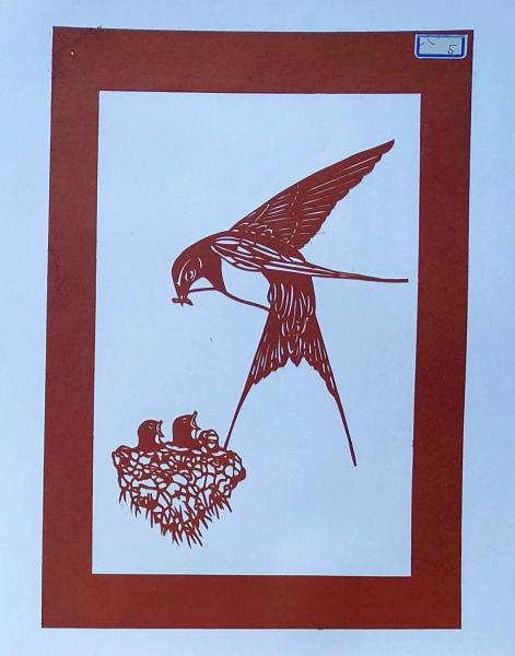 f240405005〇伊勢型紙 手彫り ツバメ ヒナ 巣 アート 伝統和紙工芸 貼り絵 切り絵 昭和レトロ インテリア〇和本古書古文書
