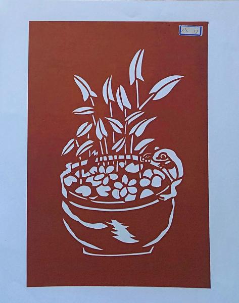 f240405007〇伊勢型紙 手彫り 百合 鉢植え アート 伝統和紙工芸 貼り絵 切り絵 昭和レトロ インテリア〇和本古書古文書