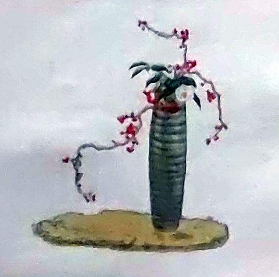 D26030694〇彩色石版画 ツルウメモドキに白玉椿 盛花 西洋花 生花図譜 華道 生花 解説付き 昭和年代〇和本古書古文書