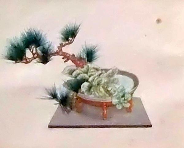 D26030696〇彩色石版画 老松に葉牡丹 盛花 西洋花 生花図譜 華道 生花 解説付き 昭和年代〇和本古書古文書