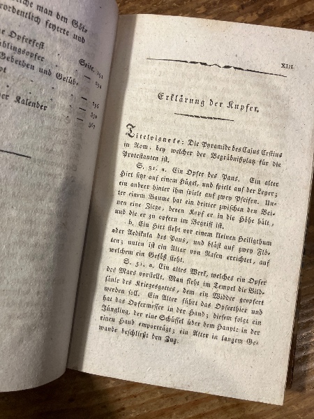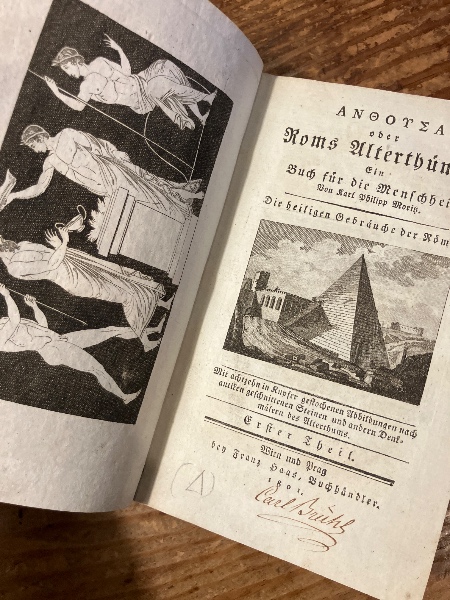 (独)アンソーサまたはローマの古代遺物〜人類のための本〜ローマ人の神聖な慣習 カール・フィリップ・モーリッツ著の第一部 Anthousa oder Roms Alterthümer. Ein Buch für die Menschheit. Die heiligen Gebräuche der Römer. Mit achtzen in gestochenen Abbildungen nach antiken geschnittenen Steinen und andern Denkmälern des Alterthums. Erster Theil (=alles von K. Ph. Moritz, ein 2. selbständiger Teil erschien von Friedrich Rambach).