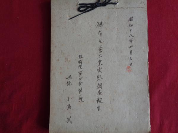 稀有元素工業実態調査報告(昭和18年4月、技術院第四部第二課、嘱託・小島武)各県27工場・会社を調査、各会社ごとに調査項目・調査結果について記述・報告