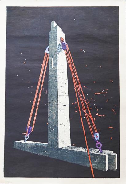河内成幸 カリフォルニア国際版画展最高賞受賞作 大判木版画(凸凹摺り)『加速夢Ⅴ』 限定75部 ●額装 直筆サイン入