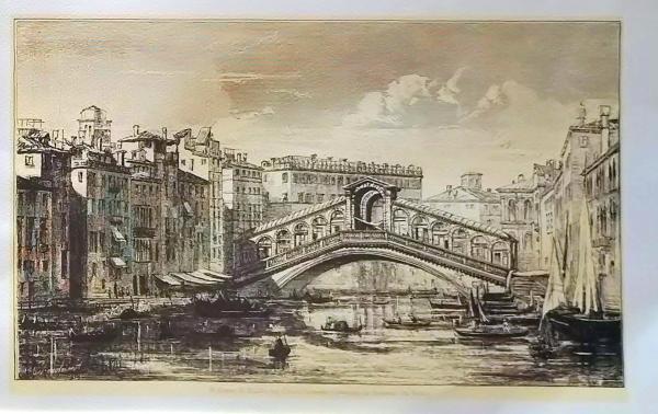 D26012513〇印刷 銅版画 ヴェネツィアにあるリアルト橋 昭和年代 2002年〇和本古書古文書