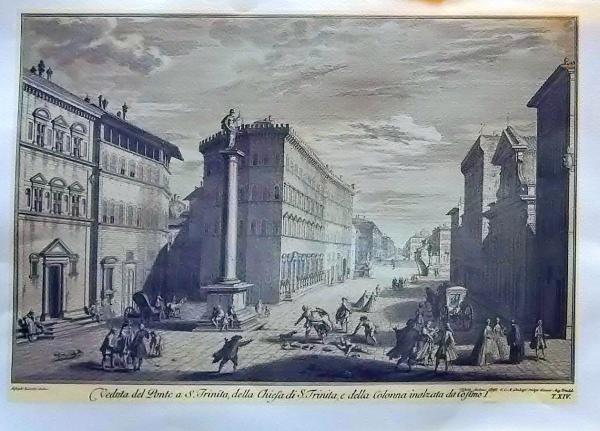 D26012514〇印刷 銅版画 フィレンツェにあるサンタ・トリニタ広場です 昭和年代 2002年〇和本古書古文書