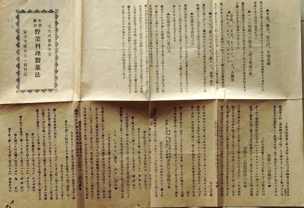 D26012802〇一枚刷り 料理献立 野菜料理製菓法 昭和年代〇和本古書古文書
