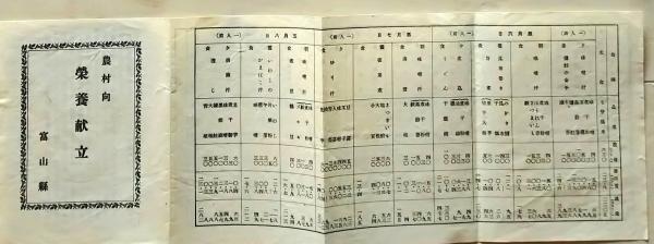 D26012803〇一枚刷り 料理献立 農村向栄養献立 昭和年代〇和本古書古文書