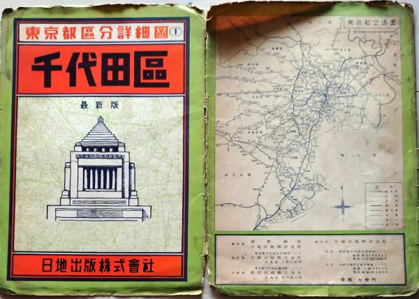 古地図 千代田区 東京都区分詳細図 日地出版 昭和32年 〇和本古書古文書