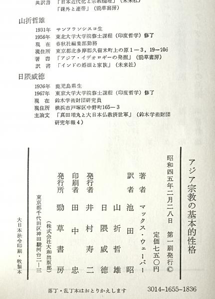 • 著者 マックス・ウェーバー 著 ; 池田昭, 山折哲雄, 日隈威徳 訳