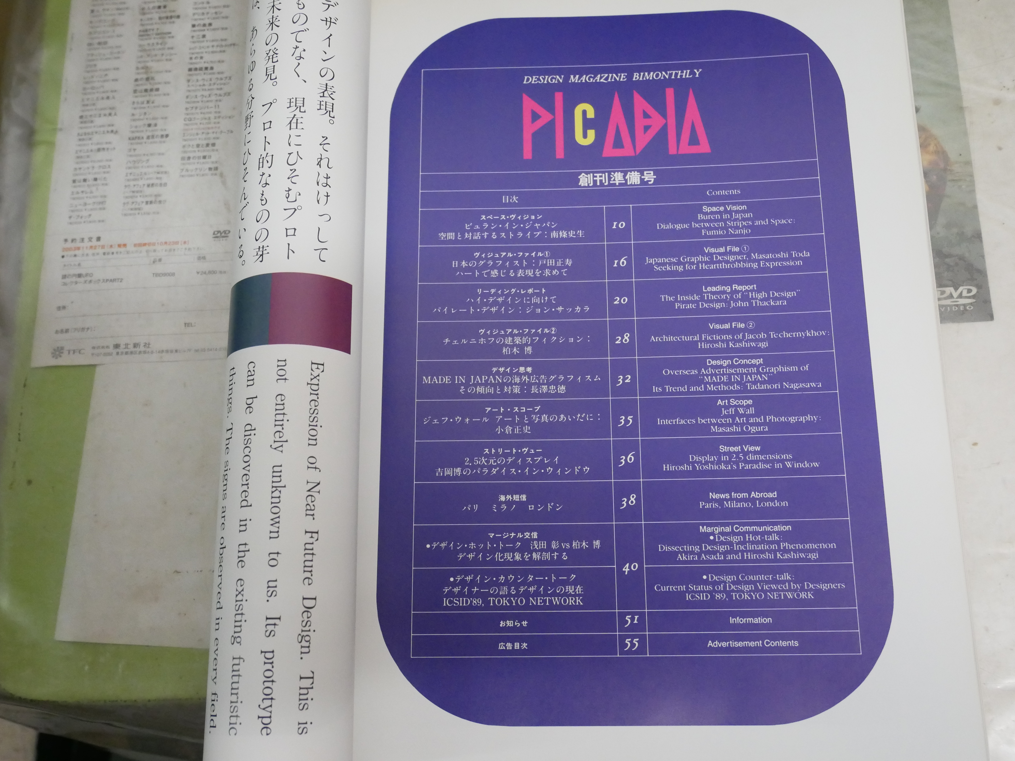 PICABIA  ピカビア 創刊準備号 トーク・浅田彰柏木博 ジェフウォールアートと写真の間に小倉正史 ほか  ヤケシミ汚有 E9右下段