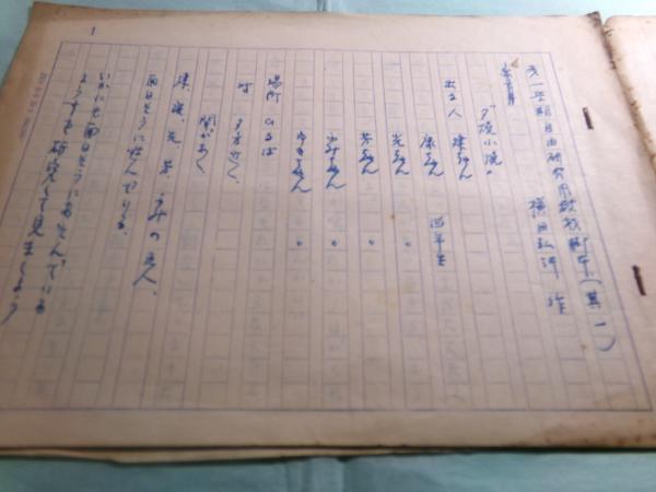 • 解説  横田弘行(1927-1998 元小学校教諭。 放送作家に転身後も子供.たちに対する愛情は変わらず教育番組、子供番組. に生涯取り組む。児童書等、多数の著書あり 日本脚本家連盟の一員で、NHKの放送作家でもあったよう.。)の肉筆。ペン書き。400字詰原稿用紙11枚。汚れ痛みあり。