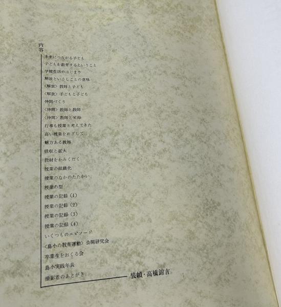 • 解説 元版初版 箱欠、裸本 ヤケ、表紙色落ち 後ろ見返し角に数字書き込み 201頁 佐波郡島村の島小学校(現・伊勢崎市立境島小学校)で斎藤が11年間行った「島小教育」の記録写真 26.5x37cm 昭和35年刊