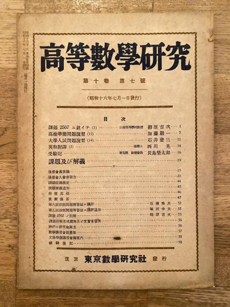 高等数学研究 第10巻第7号 昭和16年7月
