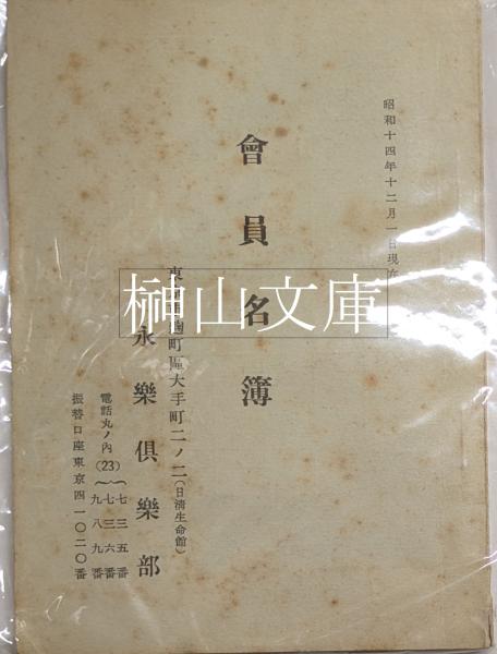 永楽倶楽部 会員名簿 昭和十四年十二月一日現在
