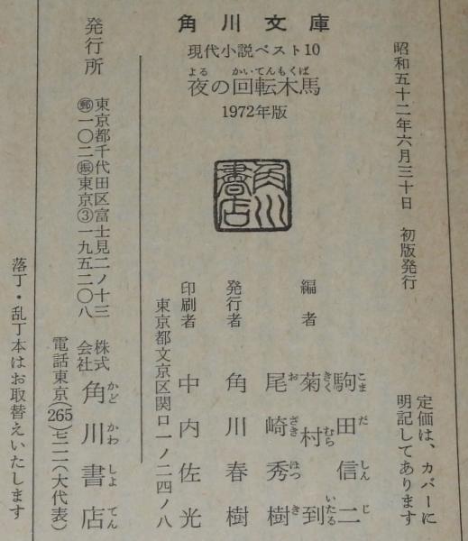 • 解説 現代小説ベスト10 夜の回転木馬 角川文庫 昭和52年6月初版