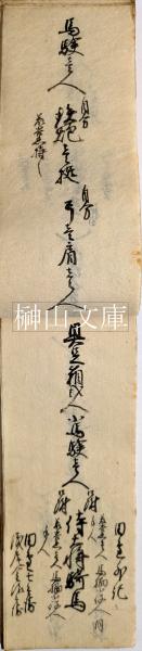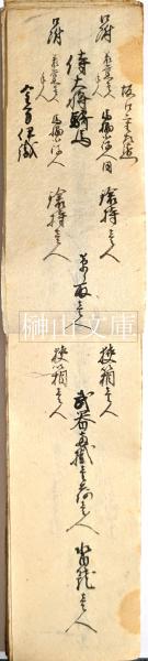 • 解説 京の防備へ向かう隊列の記録、中心と見られる位置には「家老」としか記載がないが侍大将・医師・大筒方などは個人名の記載あり、京都近郊の藩のものと思われる
