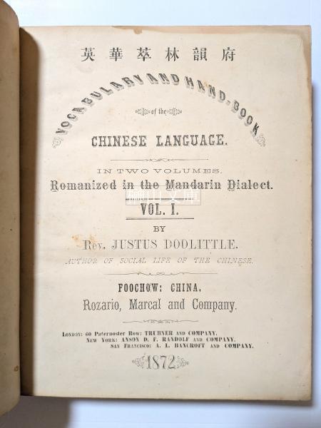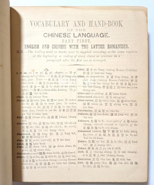 Vocabulary and hand-book of the Chinese language : romanized in the Mandarin dialect = 英華萃林韻府 vol.Ⅰ