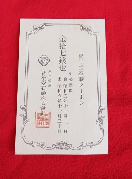 資生堂石鹸クーポン 金拾七銭他 番号・割印付 昭和五年 戦前  引替券