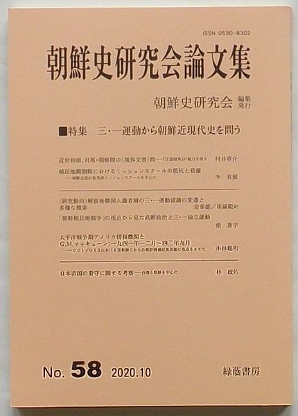 朝鮮史研究会論文集 第58集 特集 三・一運動から朝鮮近現代史を問う
