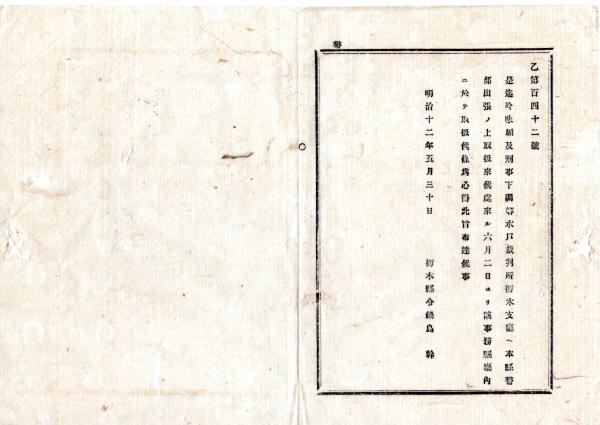 N25090130○明治布告布達 ○水戸裁判所栃木支庁へ本県警部出張 吟味願及刑事下調事務 県庁内に於て取扱 栃木県令鍋島幹○明治12年 栃木県布達○和本古書古文書