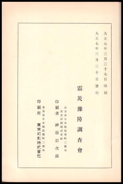 • 著者 震災豫防調査會