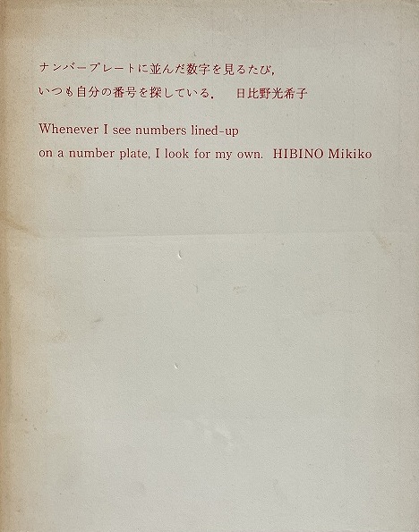 ナンバープレートに並んだ数字を見るたび,いつも自分の番号を探している. : 日比野光希子作品集