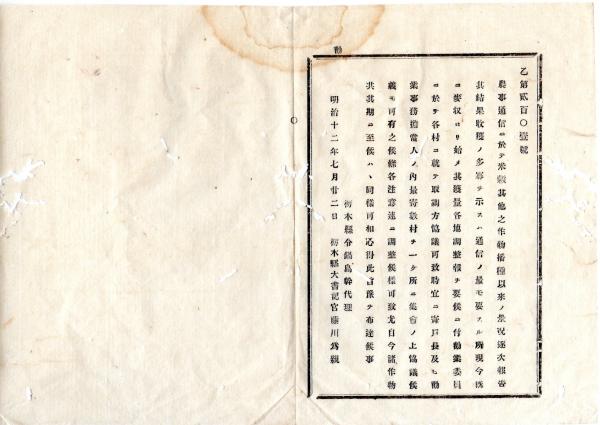 • 解説 N25090152○明治布告布達 ○農事通信は 米穀其他作物を 播種以来の景況を逐次報告し 其結果収穫の多寡を示すは 通信の要なる所 栃木県令鍋島幹○明治12年 栃木県布達○和本古書古文書