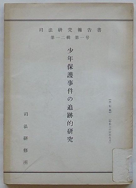 司法研究報告書 第12輯第1号 少年保護事件の追跡的研究