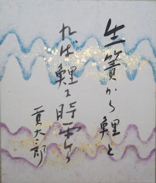 田中貢太郎小色紙 「生簀から鯉とれば鯉に時雨けり 貢太郎」