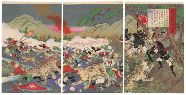 平壌ノ激戦猛虎清兵ヲ脳ス図