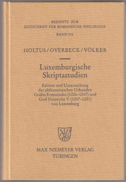 Luxemburgische Skriptastudien : Edition und Untersuchung der altfranzösischen Urkunden Gräfin Ermesindes (1226-1247) und Graf Heinrichs V. (1247-1281) von Luxemburg. <Beihefte zur Zeitschrift für romanische Philologie 316>