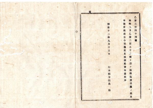 • 解説 N25091604○明治布告布達 ○臨時巡査召募の儀(本年8月コレラ病流行の際に付臨時巡査60名採用の件)召募差止 栃木県令鍋島幹○明治12年 栃木県布達○和本古書古文書