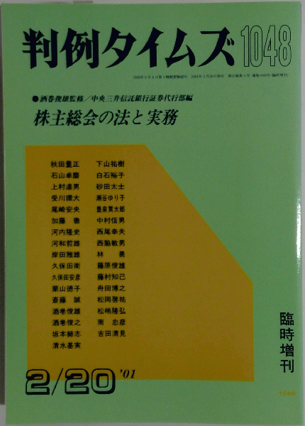 判例タイムズ 2001年2/20号 「No.1048」