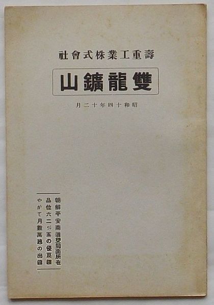 雙龍鉱山 朝鮮平安南道雙龍面所在品位62%の優良鉱やがて月数万瓲の出鉱