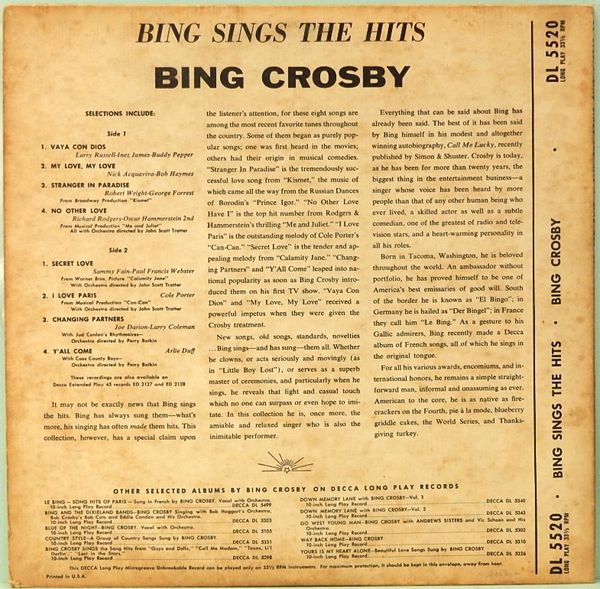 10インチ・レコード ビング・クロスビー/ Bing Sings The Hits US盤