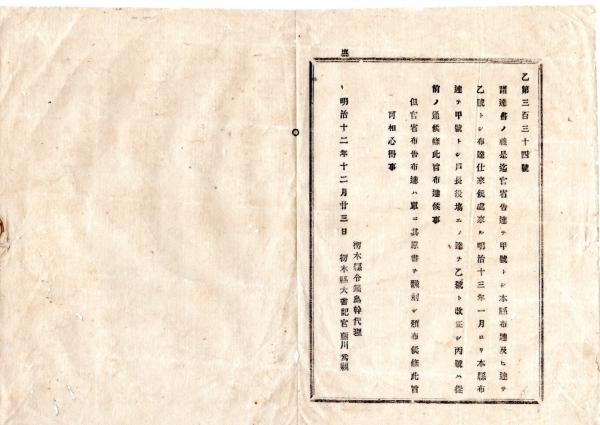 • 解説 N25091643○明治布告布達 ○栃木県庁発達書の区分改正 甲号=本県布達 乙号=戸長役場への達 丙号=従来通 但官省布告布達は原書を翻刻頒布○明治12年 栃木県布達○和本古書古文書