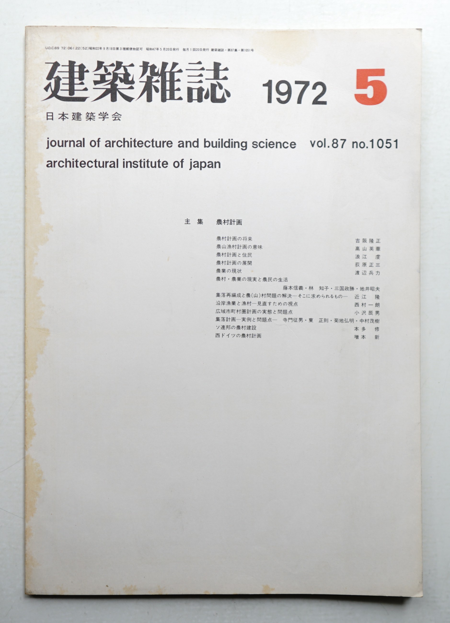 建築雜誌 第87集 第1051号 (1972年5月) <主集 : 農村計画>