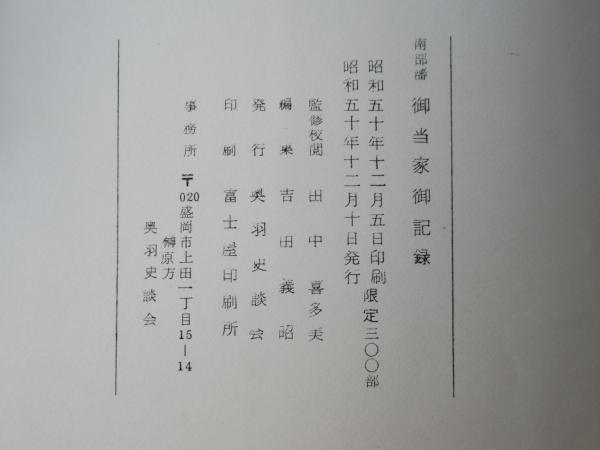 南部藩御当家御記録