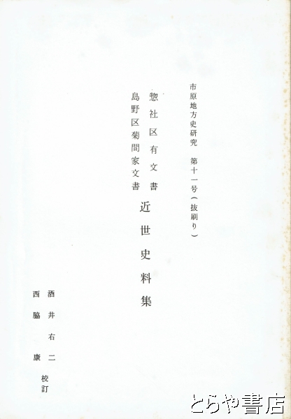 惣社区有文書島野区菊間家文書近世史料集