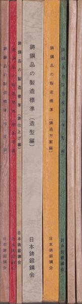 • 解説 B5判、非売品、〈4冊正誤表付、後部見返しに名前と日付印(鋳造方案編、模型編、熱処理編、検査編)〉〈2冊「贈呈」の小紙片付(溶解編2冊)〉〈1冊小口にしみ(鋳造方案編)〉〈1冊28頁に鉛筆ライン書込(造型編)〉