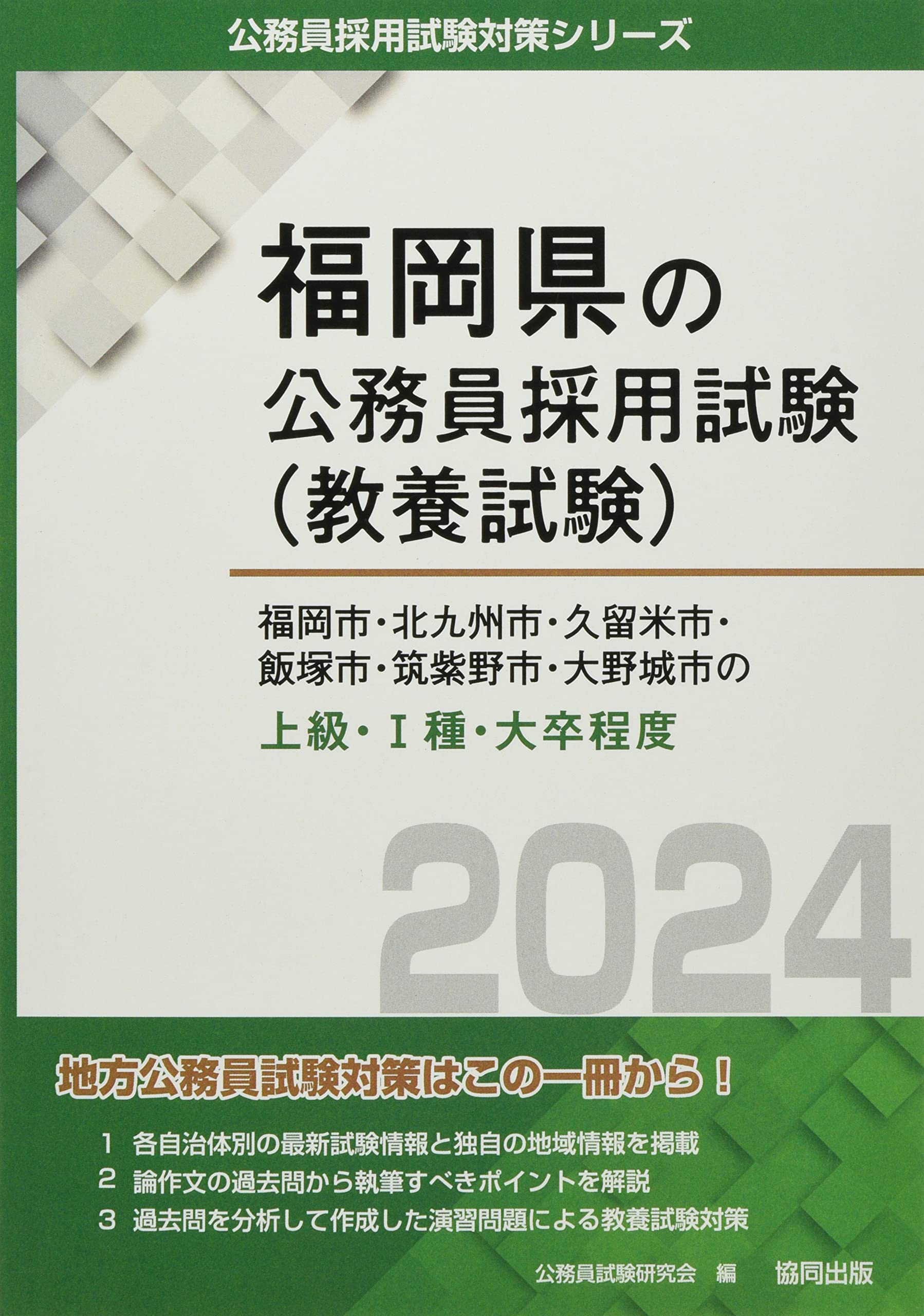 福岡市・北九州市・久留米市・飯塚市・筑紫野市・大野城市の上級・I種・大卒程度 (2024年度版) (福岡県の公務員採用試験対策シリーズ)