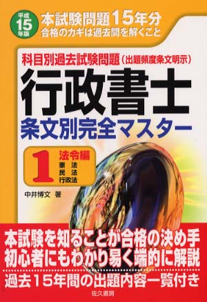 行政書士条文別完全マスター 平成15年版 1 法令編: 科目別過去試験問題(出題頻度条文明示)